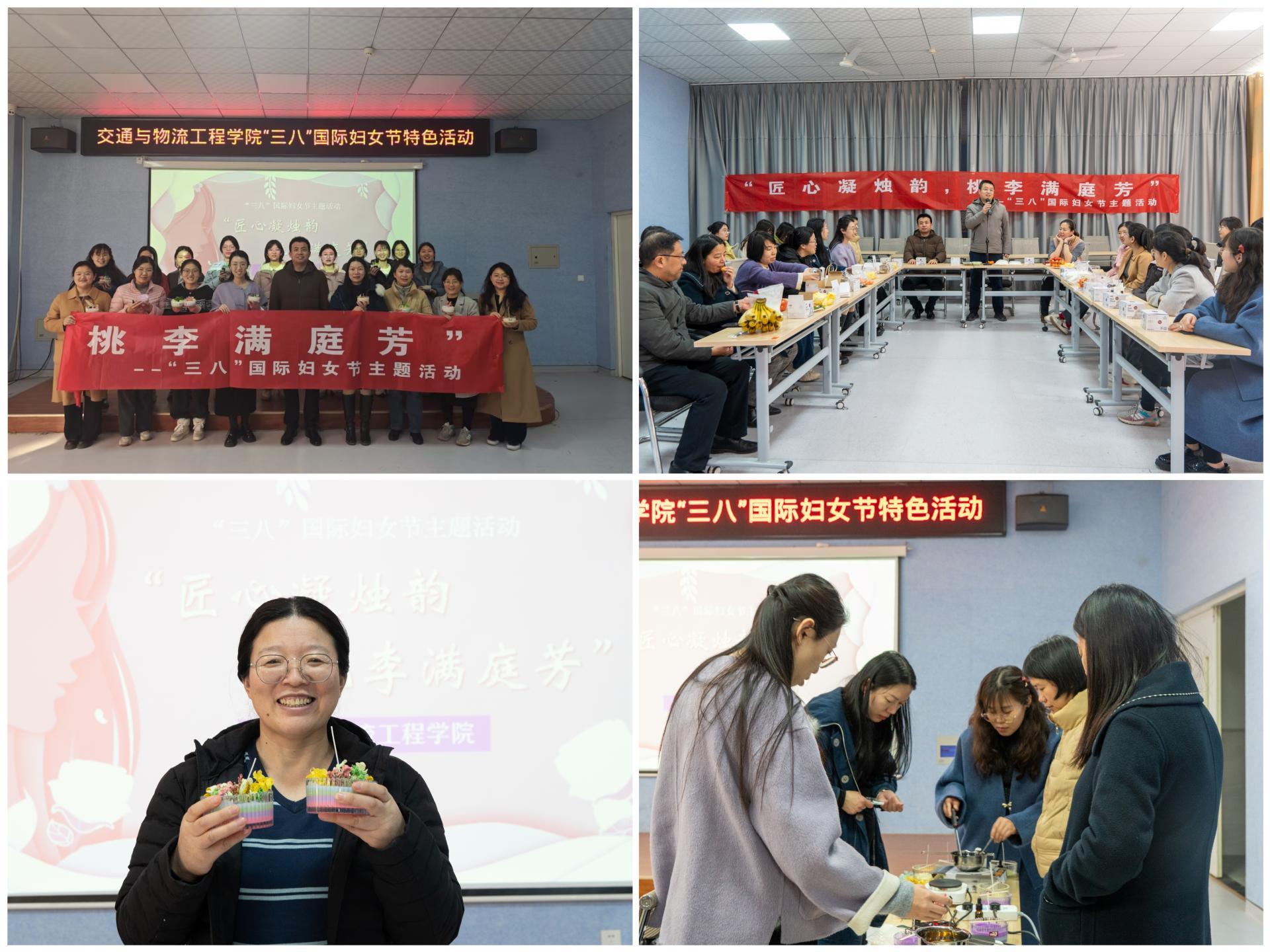 交通与物流工程学院举办“匠心凝烛韵,桃李满庭芳”活动。学院党委书记李保宏向全体女教职工献上真挚的节日祝福,他高度赞扬了女教职工们巾帼不让须眉之姿,用坚毅与卓越的态度,在教学、科研、管理等多领域取得亮眼的成绩,为推动学院发展提供强劲动力。女教职工围绕“快乐工作、乐享生活、关注健康” 踊跃展开交流分享,畅谈对生活和工作的独到感悟,并亲手制作香薰蜡烛,为自己送上一份饱含心意的节日祝福。