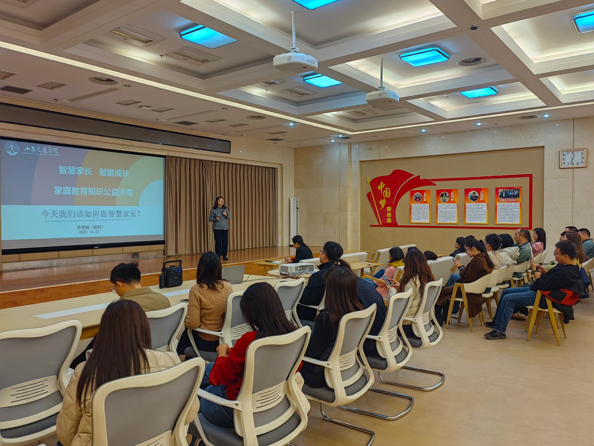 10月22日,学校工会在学术报告厅F105室教工之家举办“智慧家长 赋能成长—家庭教育知识公益沙龙”活动,邀请第三批山东省家庭教育志愿服务总队专家、我校汽车工程学院教授李爱娟担任主讲嘉宾。活动由工会主席闫晓阳主持。