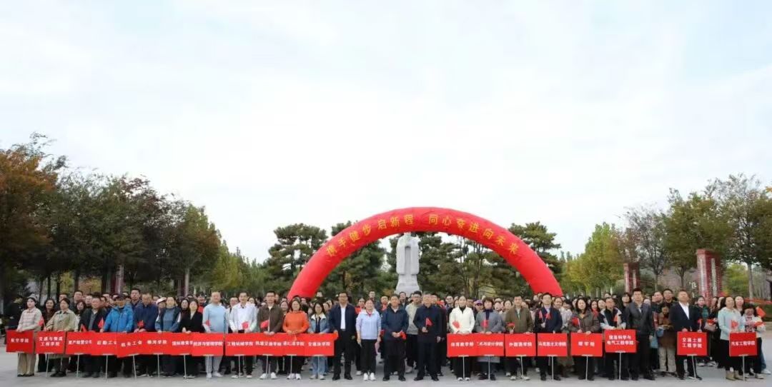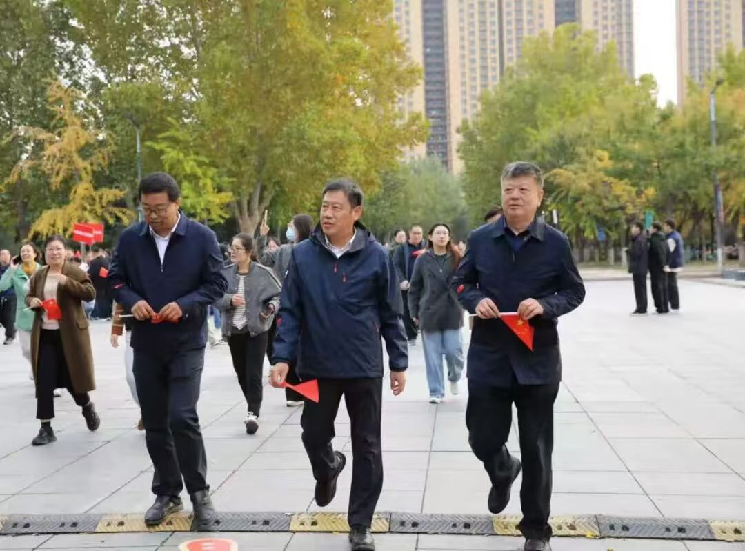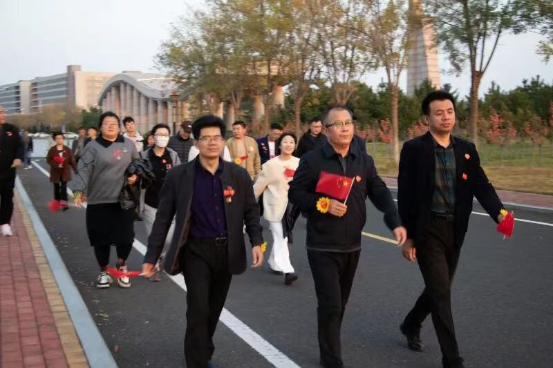 活动以“携手健步启新程 同心奋进向未来”为主题,王伟为活动鸣枪起步。济南校区教职工从学校南门广场孔子像前出发,绕行明德大道一周,途径东门、体育馆西门两处打卡点,全程2.5公里;威海校区教职工绕行校区体育场一圈后,途径校区北门、水上运动中心、鲸鱼桥、南门、明德楼等八个校园打卡点,全程约3公里。离退休教职工在无影山校区田径跑道绕行。活动中,教职工们精神饱满、步伐矫健,大家一边听风赏景,一边畅聊心声,充分展现了积极向上的精神风貌。