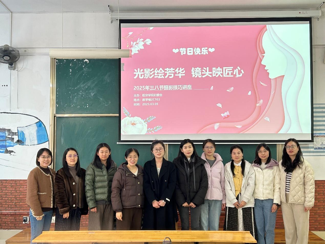 3月5日下午,航空学院妇委会为庆祝“三八节”,特别策划了一场别开生面的活动——女教工摄影比赛暨摄影技巧讲座。此次活动旨在提升女教工的艺术修养,激发她们的摄影热情,同时展现女性风采与校园之美。学院妇委会主任管宁及全体女教师参加本次活动。